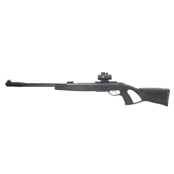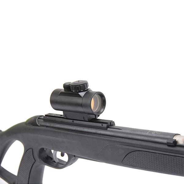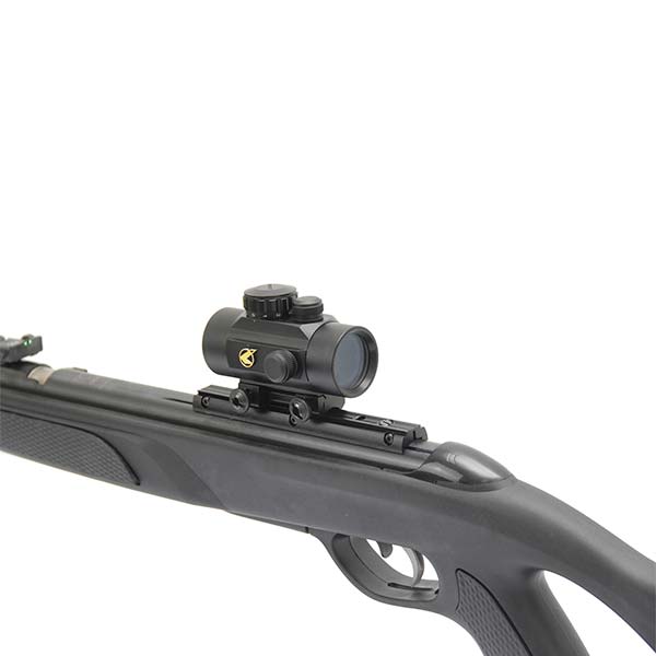 Acompanha um red dot gamo que pode ser facilmente instalado no trilho 11mm dessa Caarabina CFR.