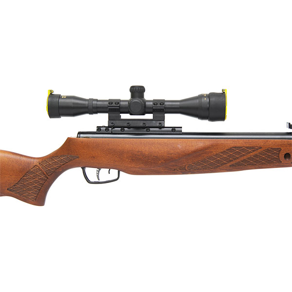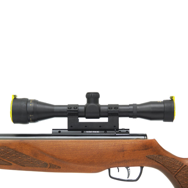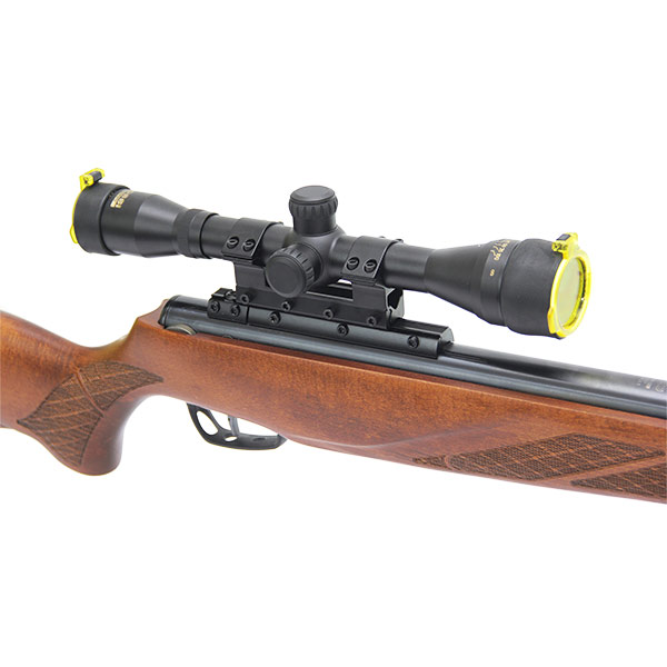 Essa Carabina Gamo possui tanto alça como massa de mira com fibra óptica, o que ajuda muito a visualizar o alvo com maior clareza.