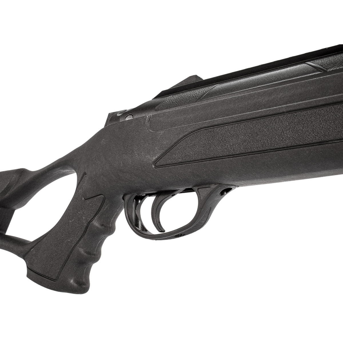 A Carabina Hatsan Airtact conta com um sistema Nitro de 60kg e seu modo de disparo é tiro a tiro com engatilhamento por cano basculante.