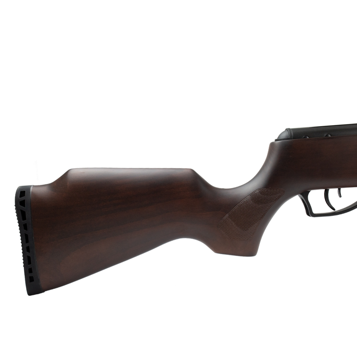 A Carabina Nova Vista possui coronha em madeira e a empunhadura é super confortável. Além disso possui uma soleira emborrachada para oferecer maior conforto no momento do disparo.