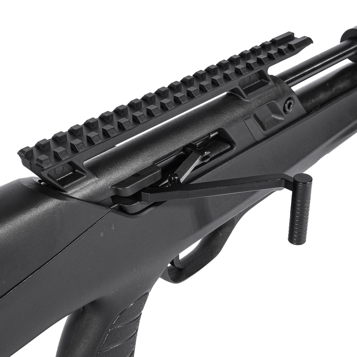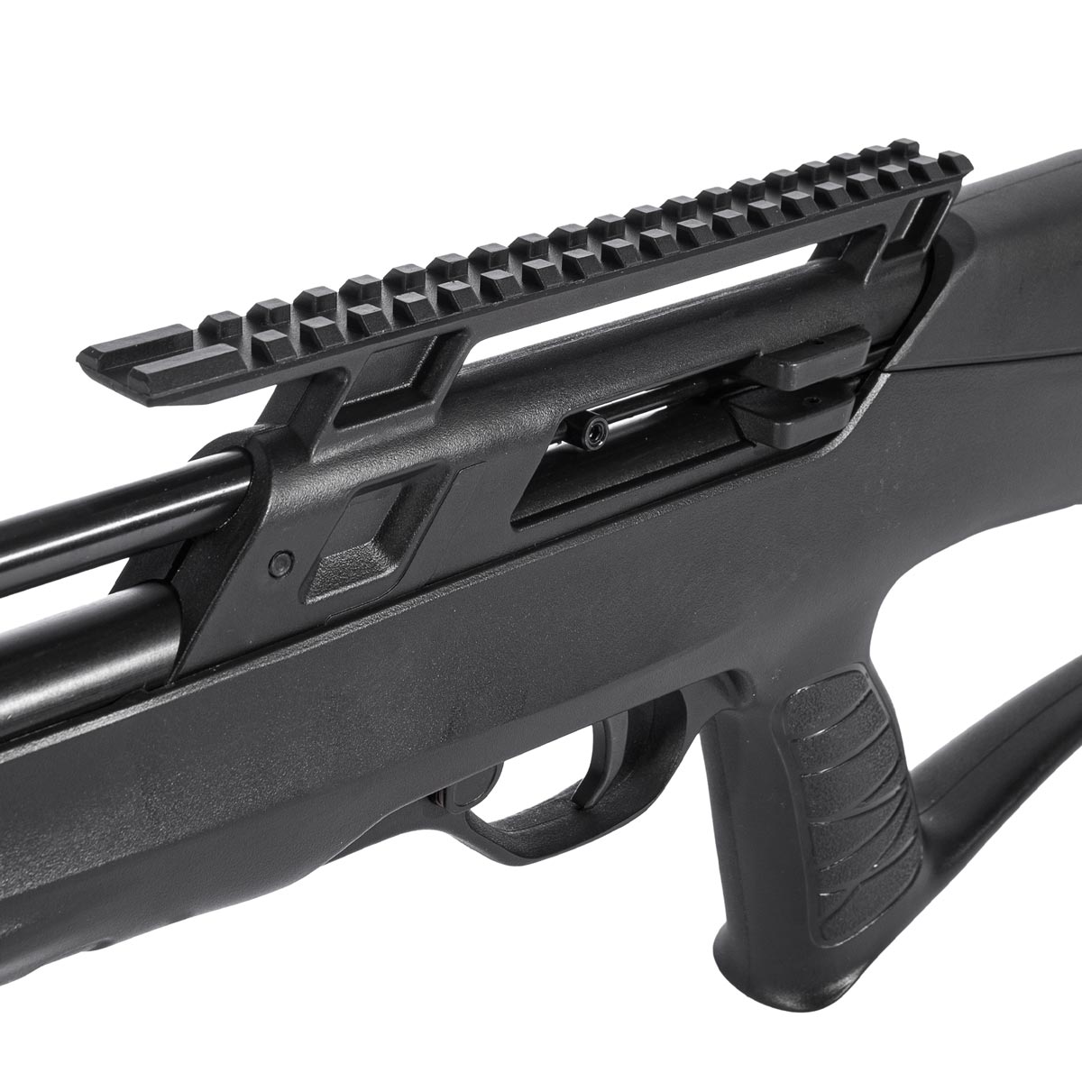 Conta com trilho superior elevado 20 mm picatinny para uso de luneta ou red dot. É essencial o uso de um dispositivo óptico nessa