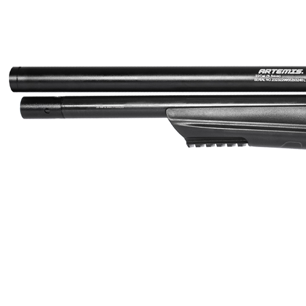 A Carabina Artemis vai com supressor embutido na ponta do cano.