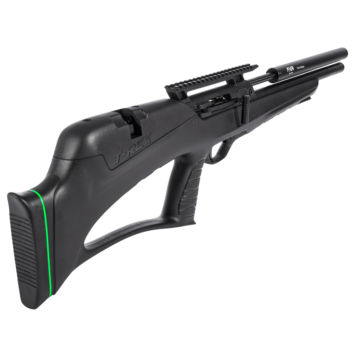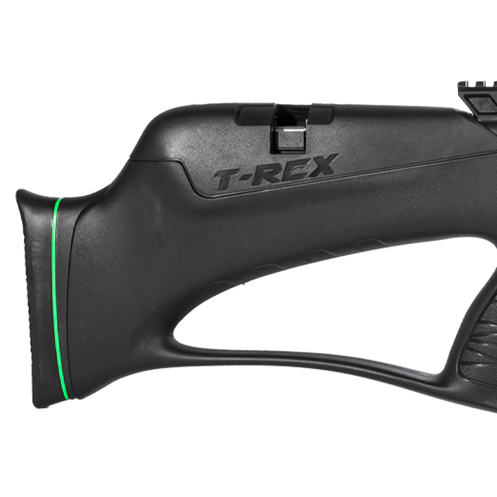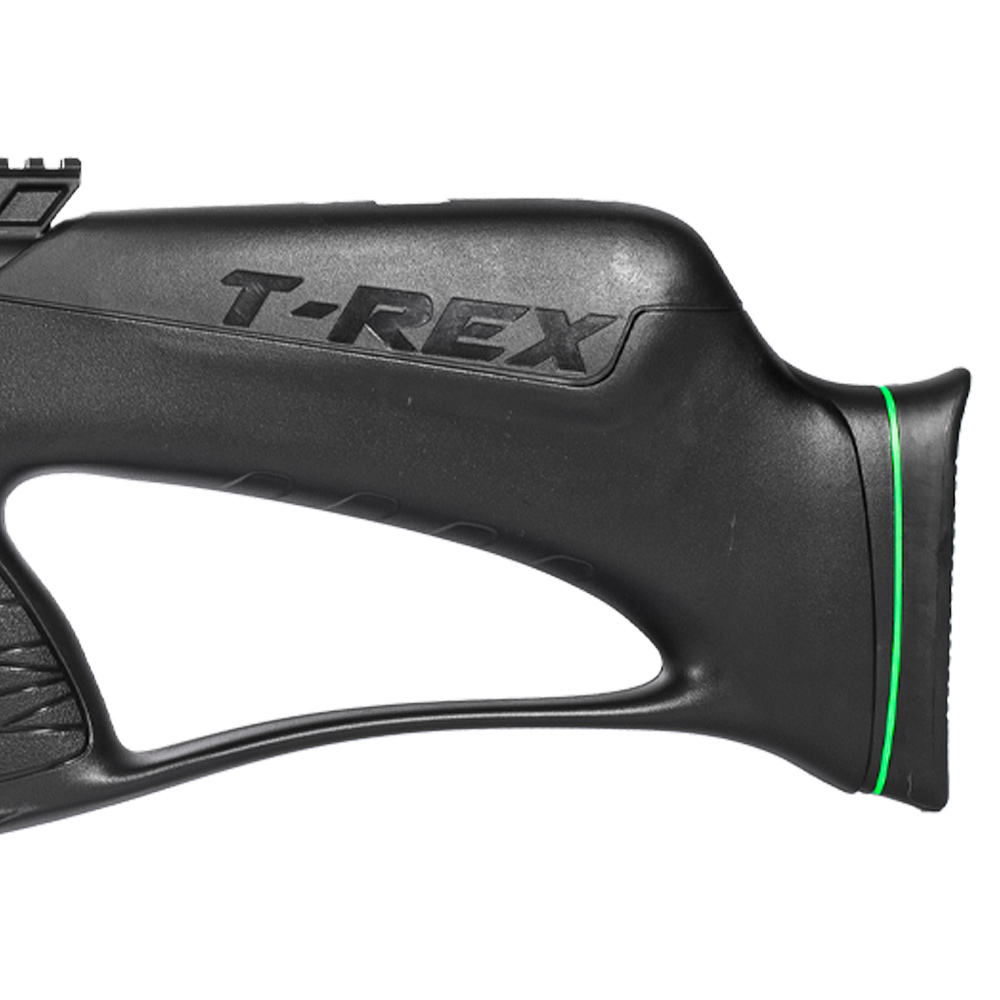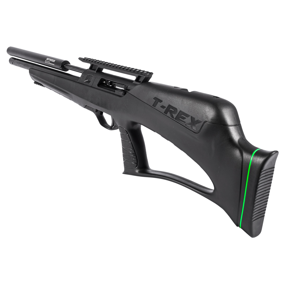 É uma carabina pcp Bullpup muito bonita na cor preta em polímero de alta densidade e com detalhes na cor verde que deixam o design da T-Rex muito moderno e atraente.
