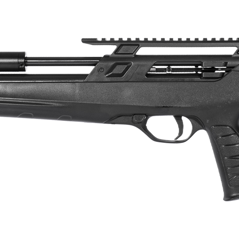 Essa é uma Carabina de pressão PCP (Pre Charged Pneumatic) com configuração Bullpup que tem um cano longo de precisão e tamanho compacto de fácil manuseio, armazenamento e transporte.