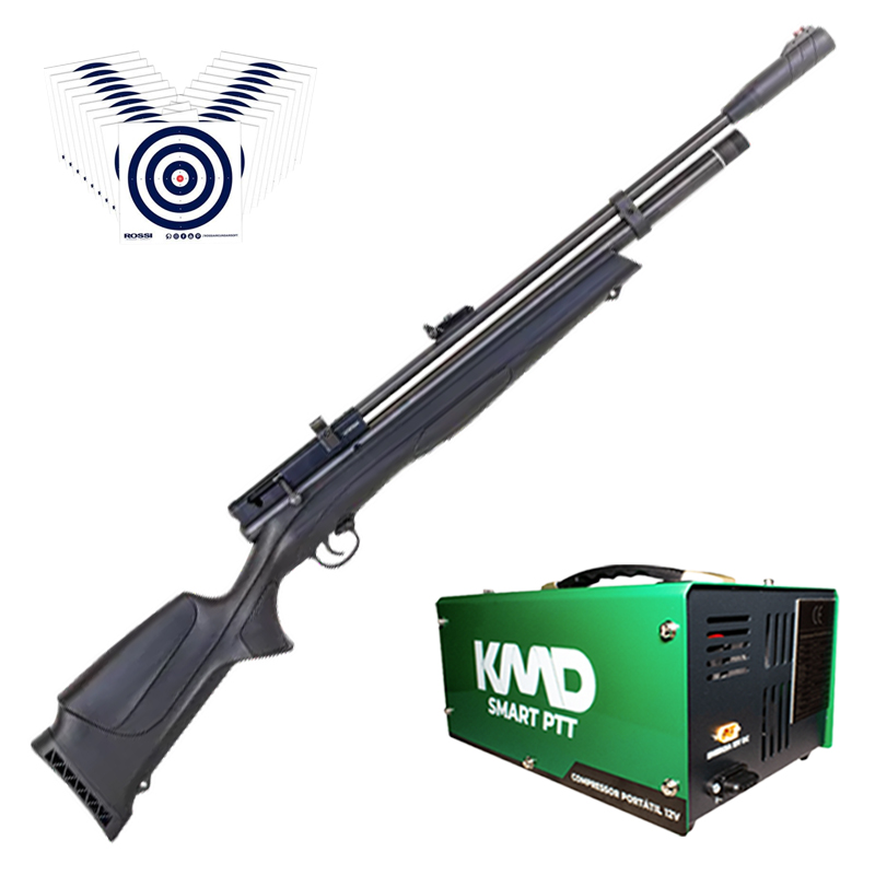 KIT feito para você! Conta com um Compressor de Ar KMD para ajudar no enchimento do cilindro da sua carabina PCP e Alvos de Treino Rossi.