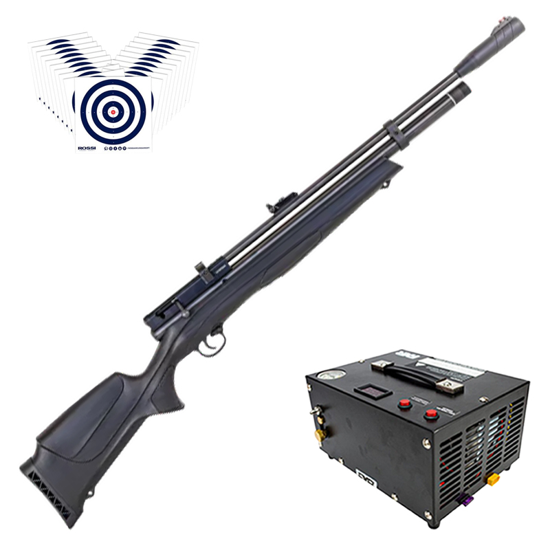 Combo completinho para você! Conta com Compressor de Ar FXR para facilitar o seu trabalho ao encher o cilindro da sua PCP e Alvos de Treino Rossi.