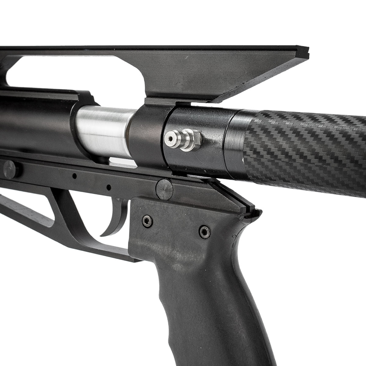 Carabina 6.35mm com manômetro integrado na lateral para leitura do cilindro de ar.