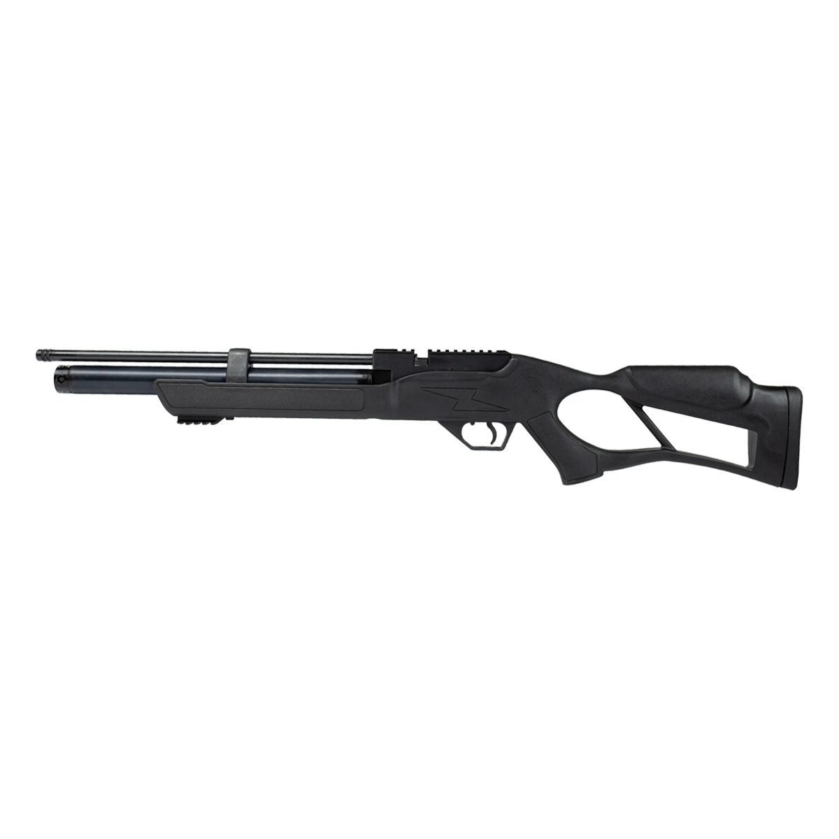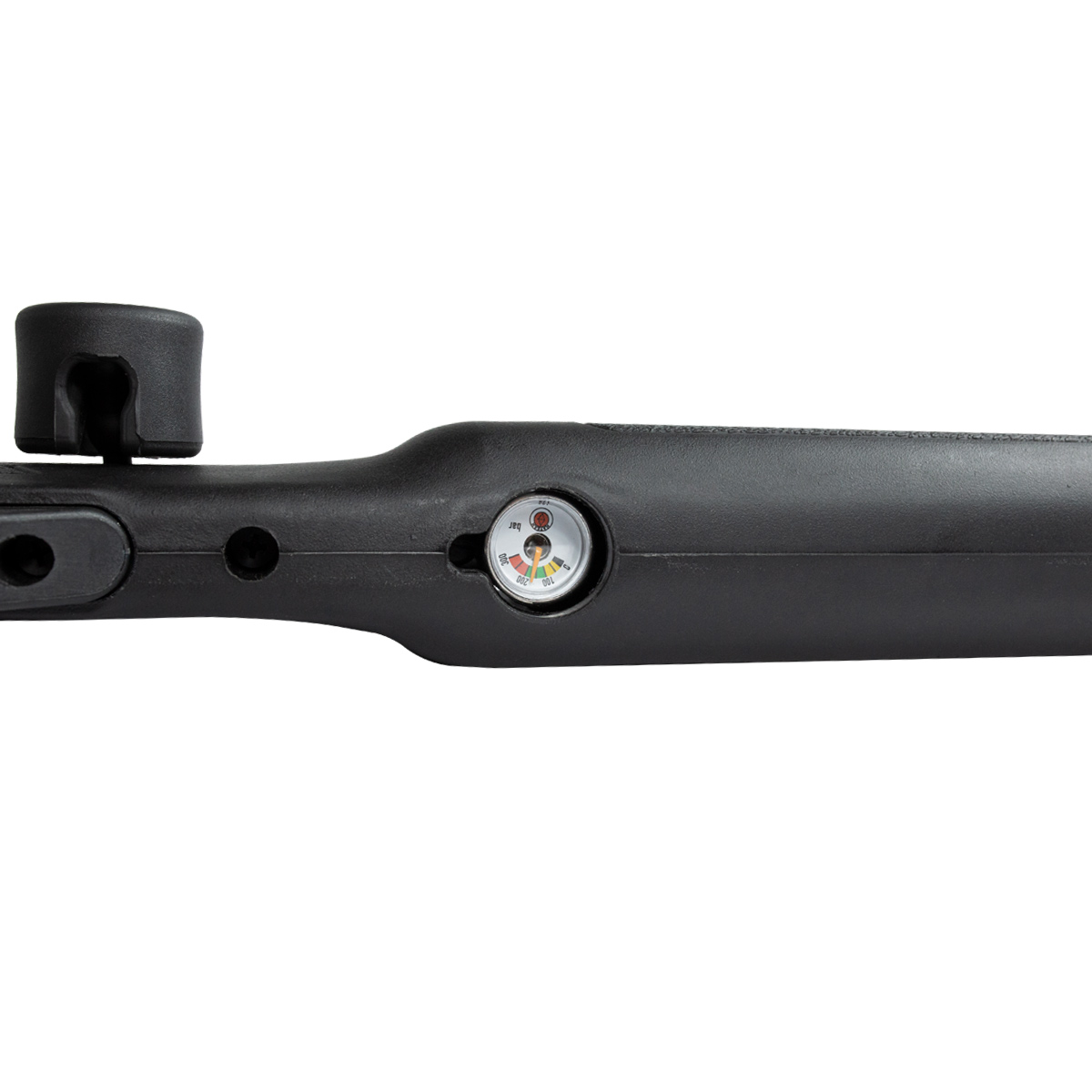 Possui cilindro de ar de 165cc com pressão máxima de trabalho de 200BAR com manômetro integrado na coronha.