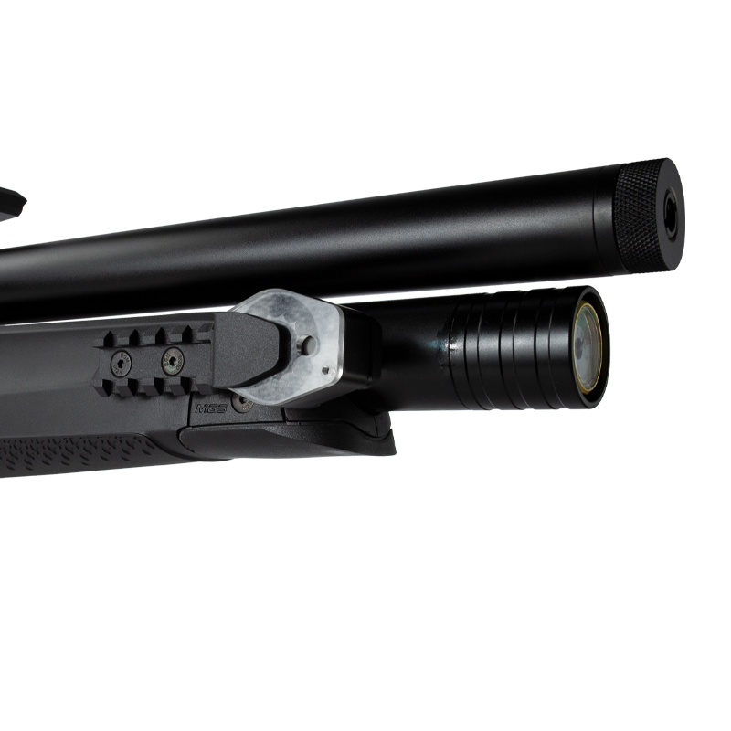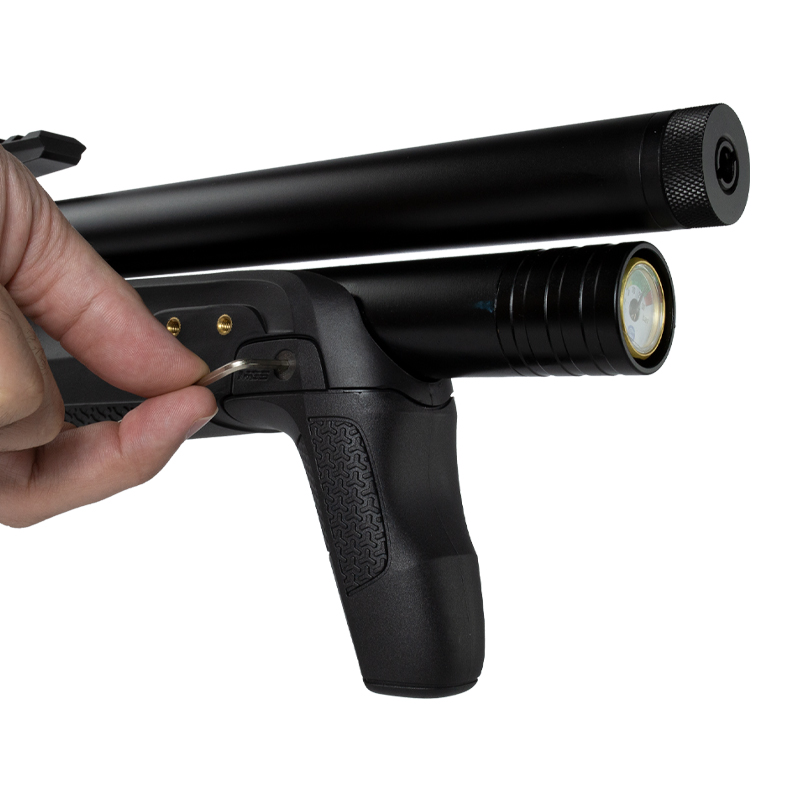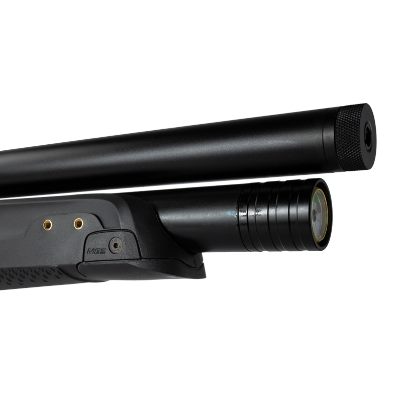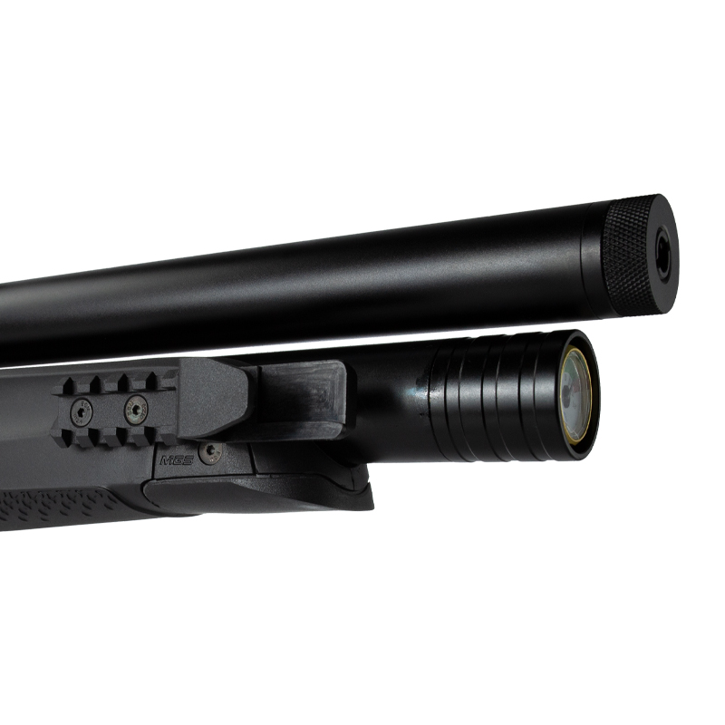 Essa Carabina PCP (Pre Charged Pneumatic) possui um cilindro de ar de 265 cc.