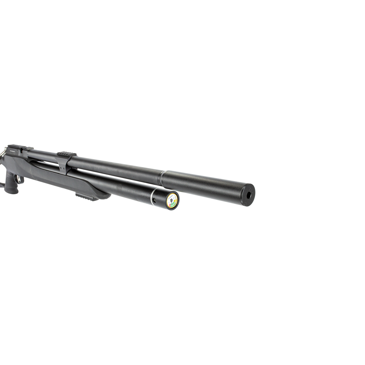 Acompanha supressor com sistema Air Stripper. Isso permite disparos com maior precisão e menor ruído. O sistema Air Stripper consiste em impedir a passagem dos gases junto ao projétil no momento do disparo, permitindo que a saída do chumbo seja mais limpa e menos turbulenta, auxiliando na precisão do tiro.