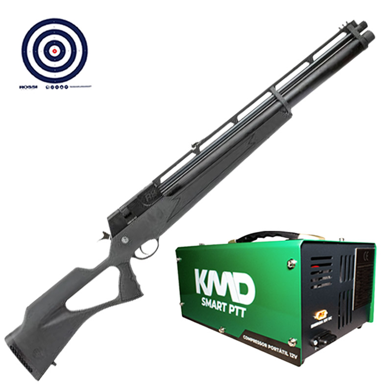 Carabina de Pressão PCP R8 Black Standard Rossi 5.5mm + Compressor de AR KMD + Alvos