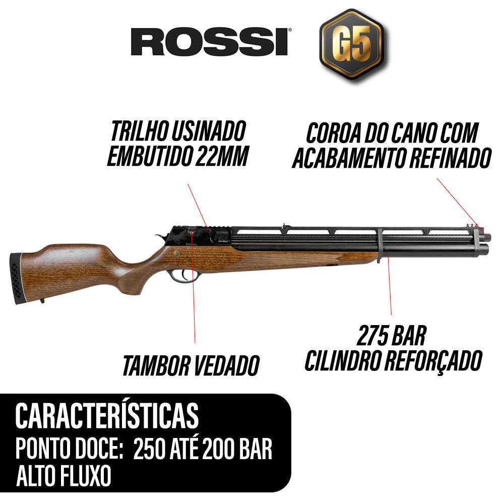 PCP R8 6.35 CARABINA DE PRESSÃO ROSSI ALTO FLUXO GERAÇÃO 5