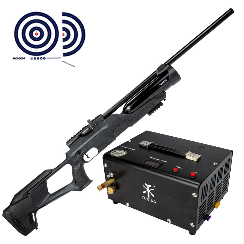 Combo super especial para você! Conta com Compressor de Ar Tuxing para facilitar o preenchimento do cilindro da sua carabina e Alvos de Treino Rossi.