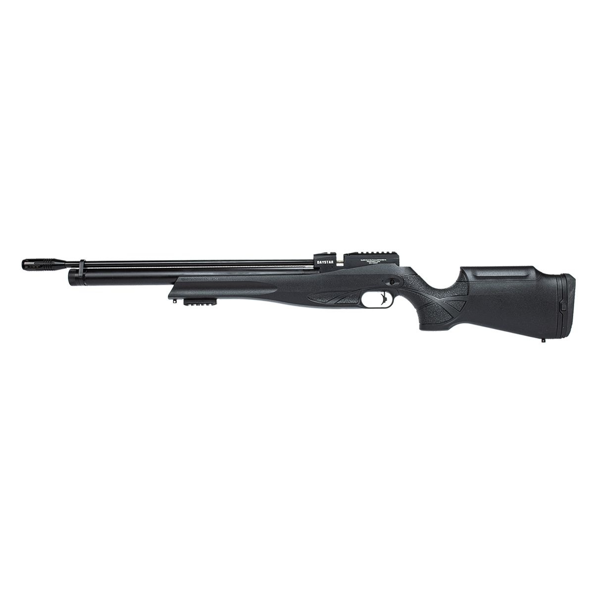 A carabina Reximex Daystar é uma PCP multi shot com coronha preta ambidestra de visual clássico, projetada para conforto e estabilidade durante o uso. Conta com apoio de bochecha ajustável e soleira emborrachada que auxiliam na ergonomia, além de engates para bandoleira e construção resistente. Seu cilindro de ar possui capacidade de 260 cc com pressão máxima de trabalho de 250 bar, manômetro integrado e válvula reguladora de pressão que permite ajustar a potência conforme a necessidade.