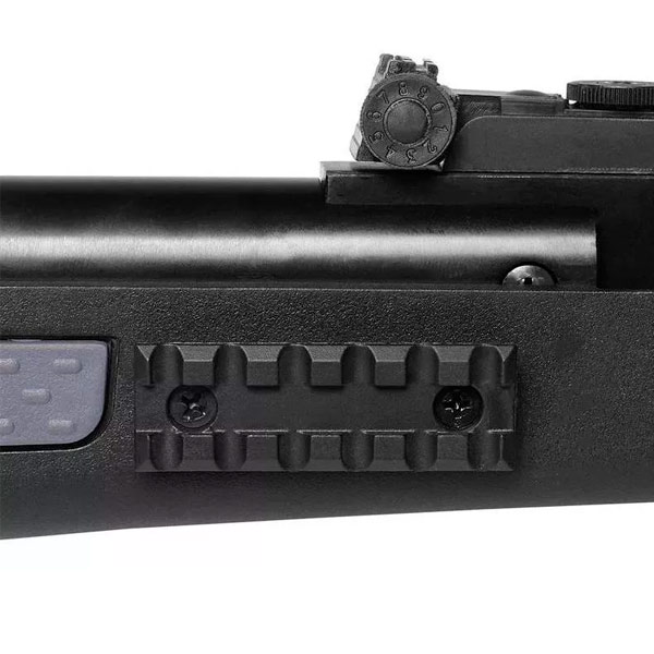 Trilho nas laterais de 22mm e trilho tipo ranhura de 11mm na parte superior para instalação de lunetas.