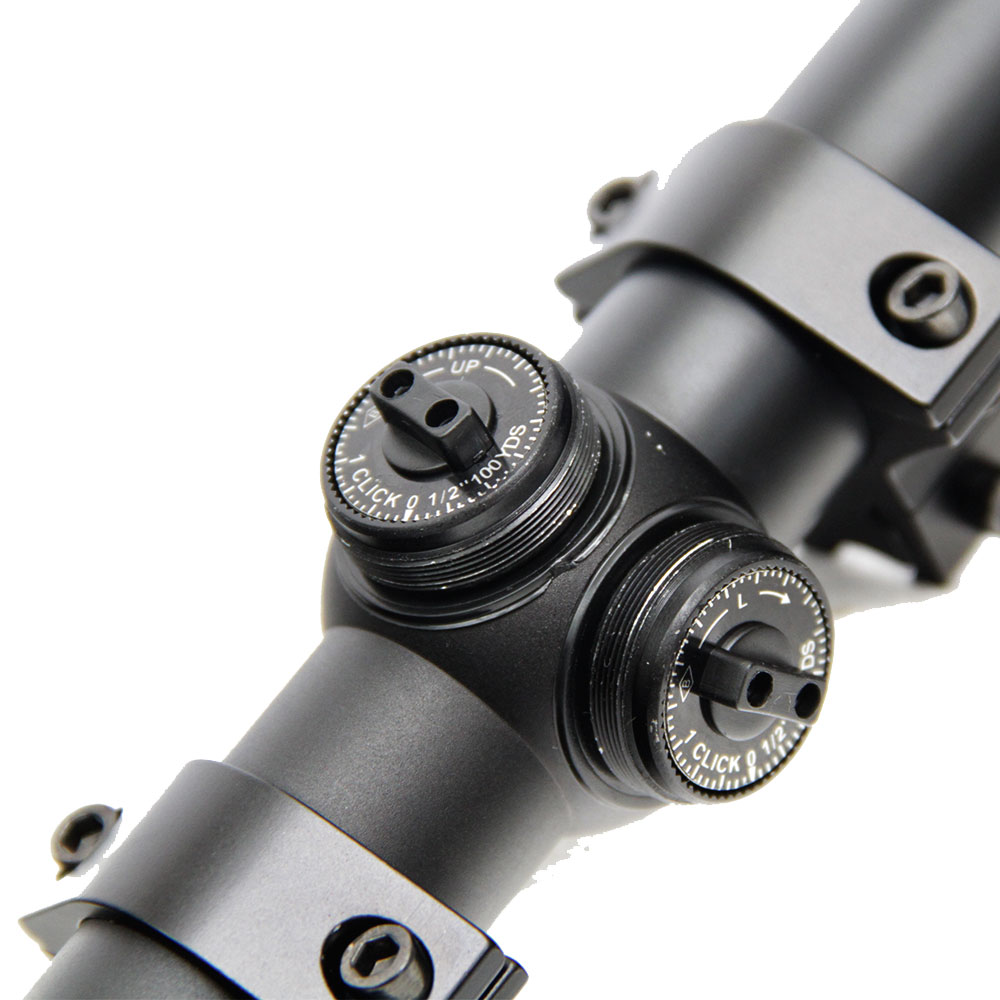 A alça de mira é deslizante com regulagem micrométrica, vertical e horizontal. A massa de mira é fixa.