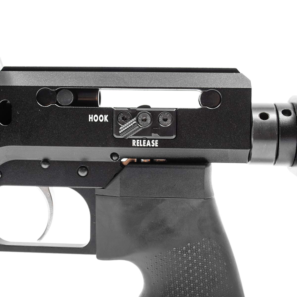 Para instalação de ópticas, o modelo possui trilho superior Dovetail de 11 mm, ideal para montagem de lunetas ou red dots. Já na parte inferior do cilindro há um trilho Weaver/Picatinny, permitindo instalação de bipés e outros acessórios que aumentam a estabilidade durante o disparo.