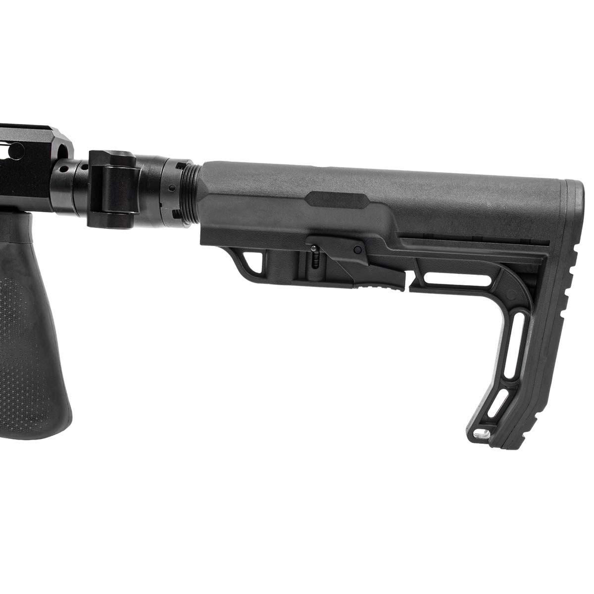 A carabina possui cano de precisão com 457 mm (18"), contribuindo para excelente estabilidade e desempenho balístico em tiros de média e longa distância. Seu comprimento total varia entre 740mm, 940 mm e 1050 mm, graças à coronha dobrável e ajustável, que permite regular o comprimento de tração (LOP) e facilita o transporte e armazenamento.