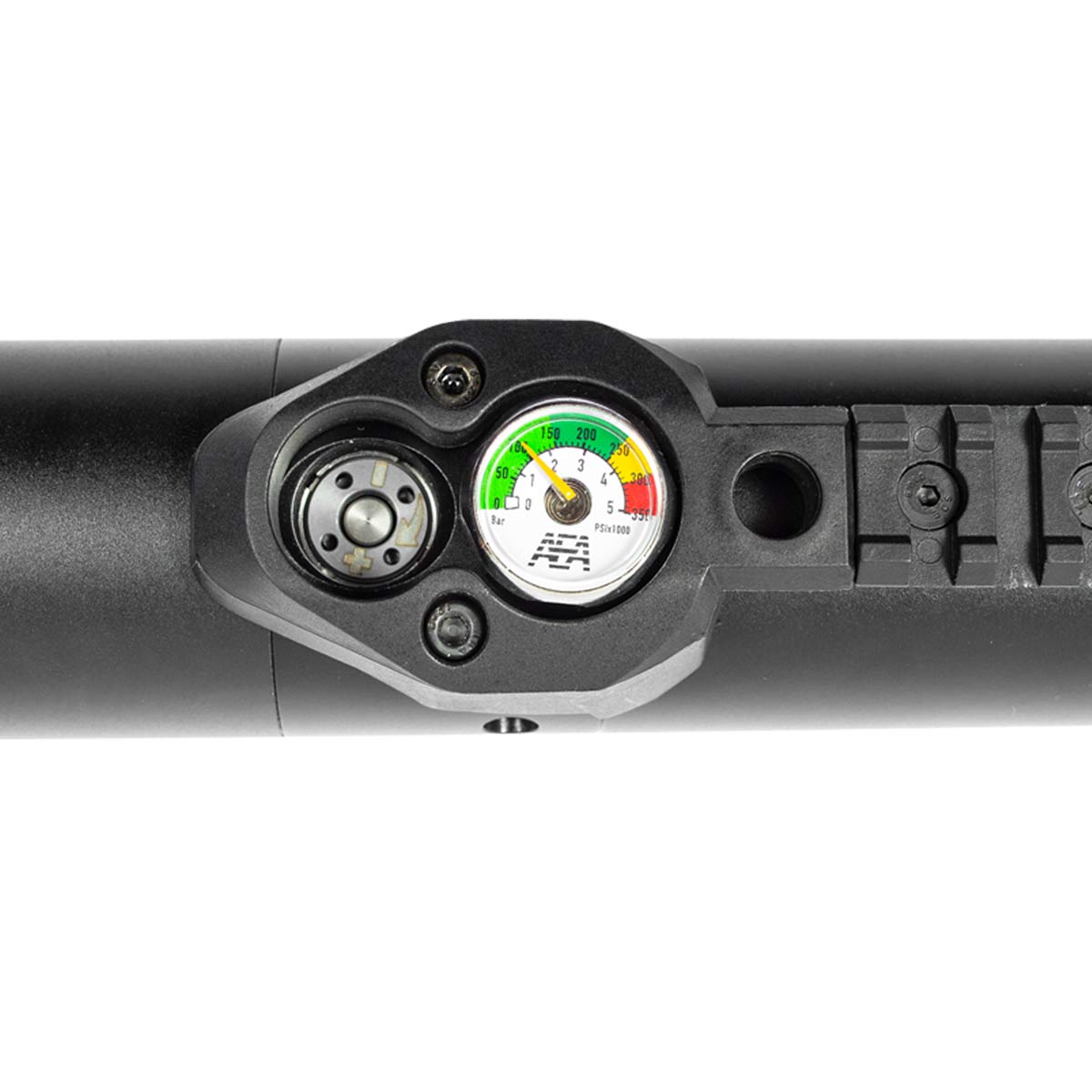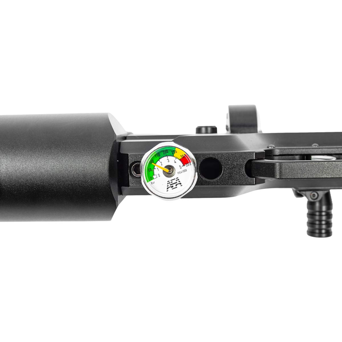 A carabina conta com dois manômetros integrados: