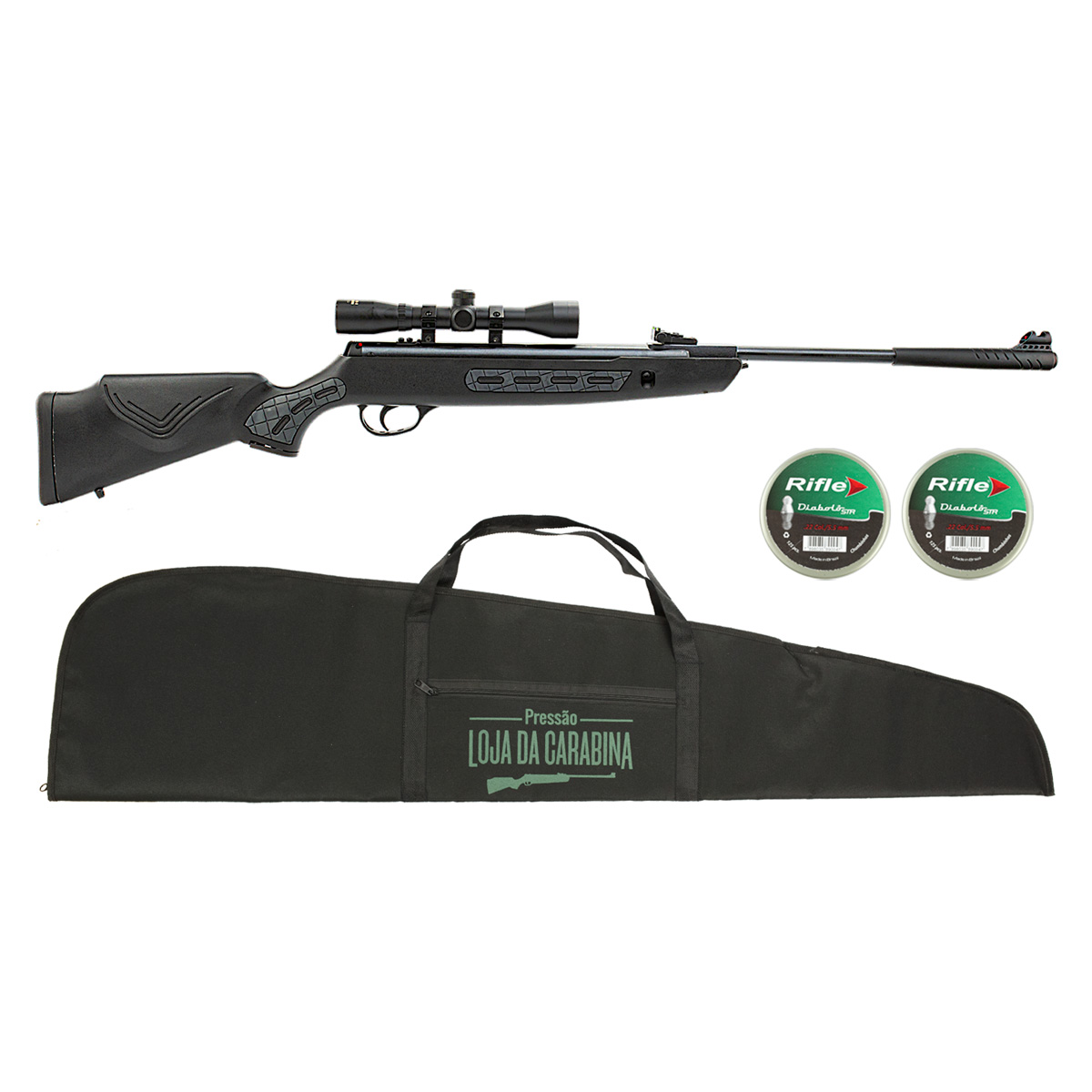 CARABINA HATSAN STRIKER 1000S + LUNETA ROSSI 4X32 + CAPA + CHUMBINHO
