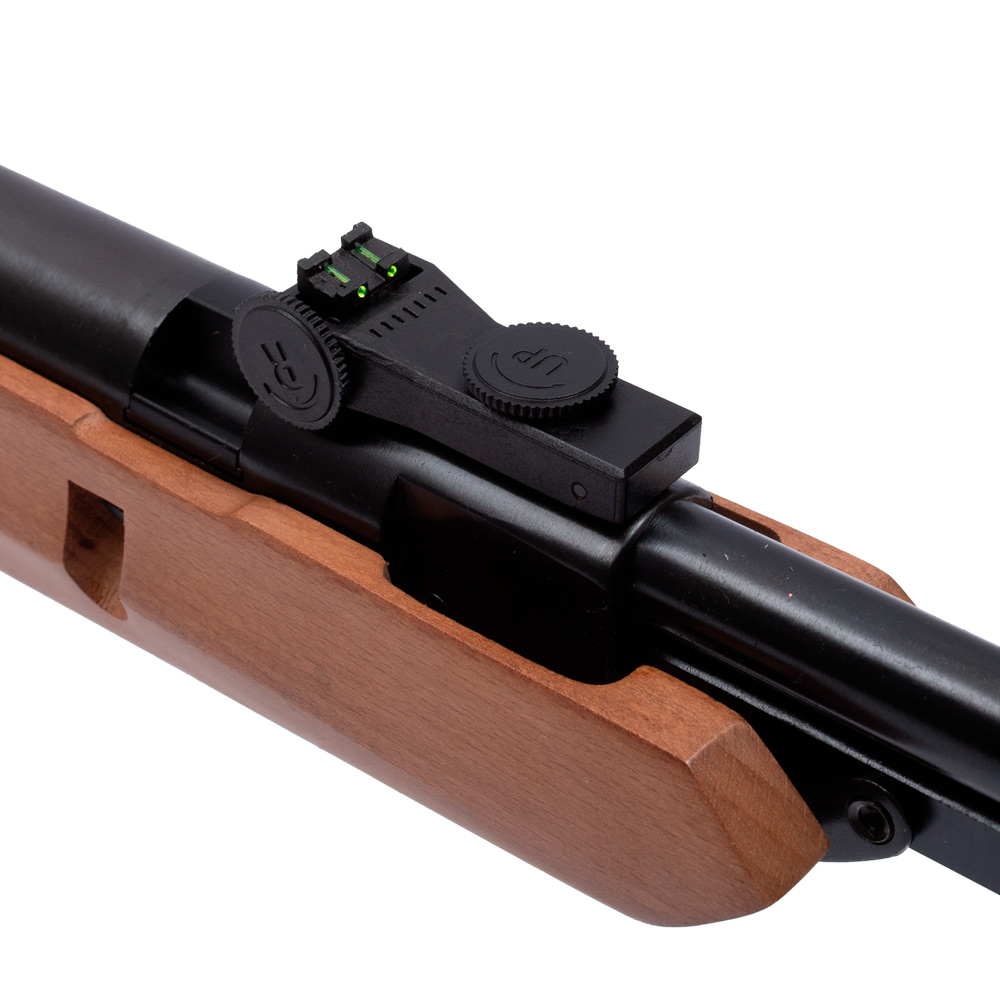 - Conjunto de mira aberta: Sim, com fibra óptica
