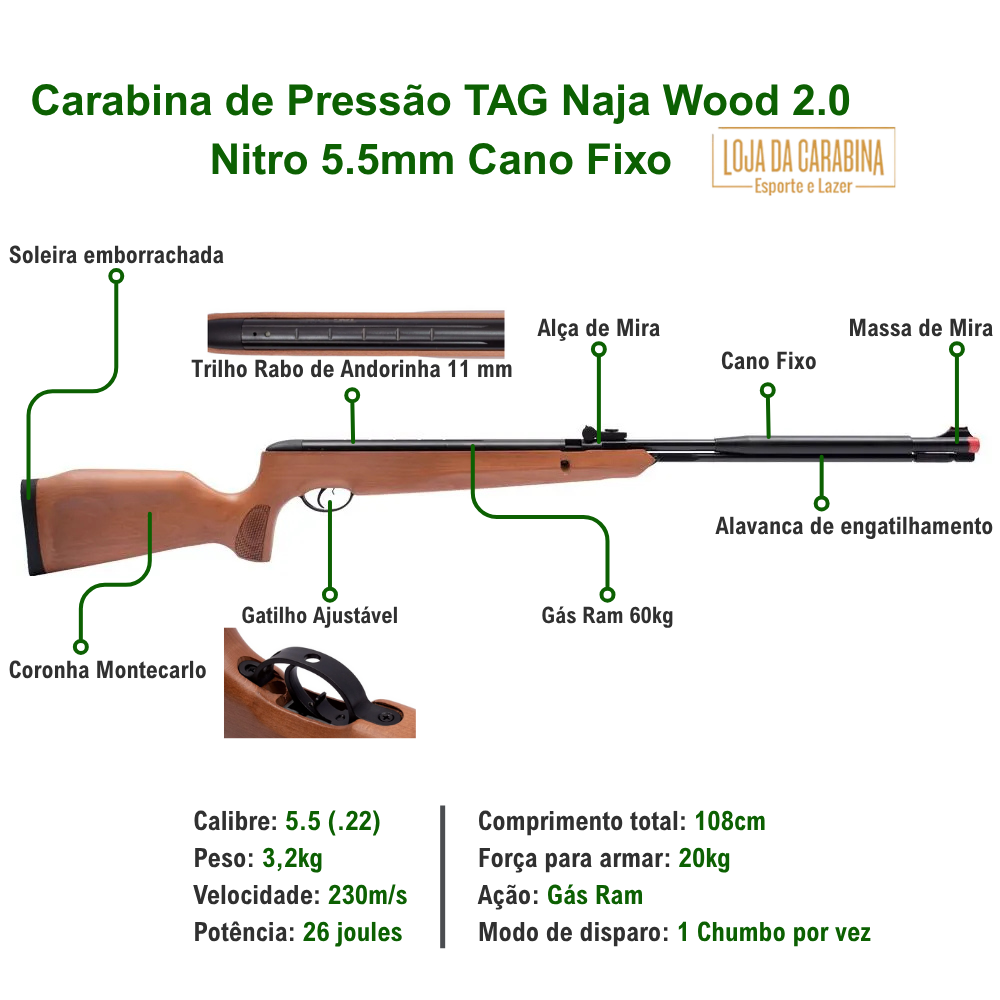 CARABINA CANO FIXO TAG NAJA 2.0 WOOD 5.5 MM