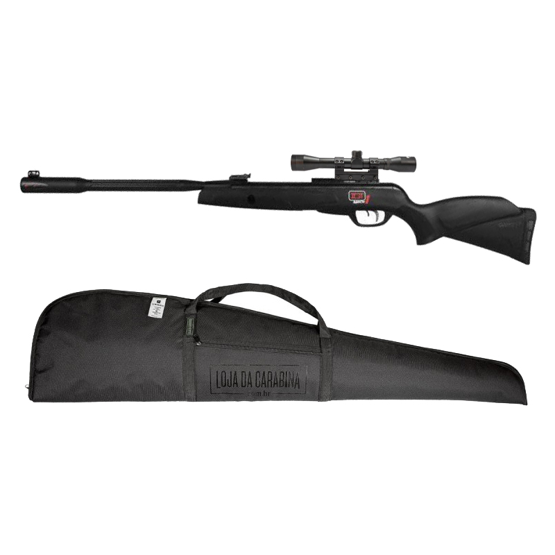Esta Carabina Gamo é avançada em desenho e ergonomia, com coronha ambidestra em fibra de nylon extra leve, muito utilizada para caça em outros países, em vista que, o caçador não se cansa ao carregar o equipamento.