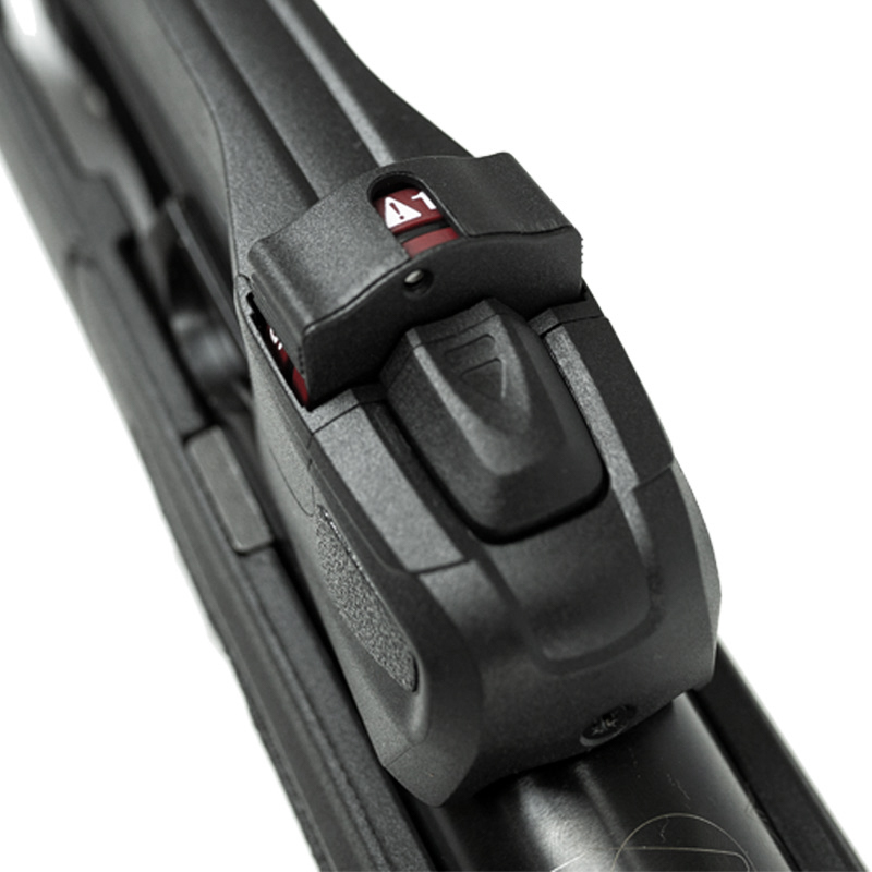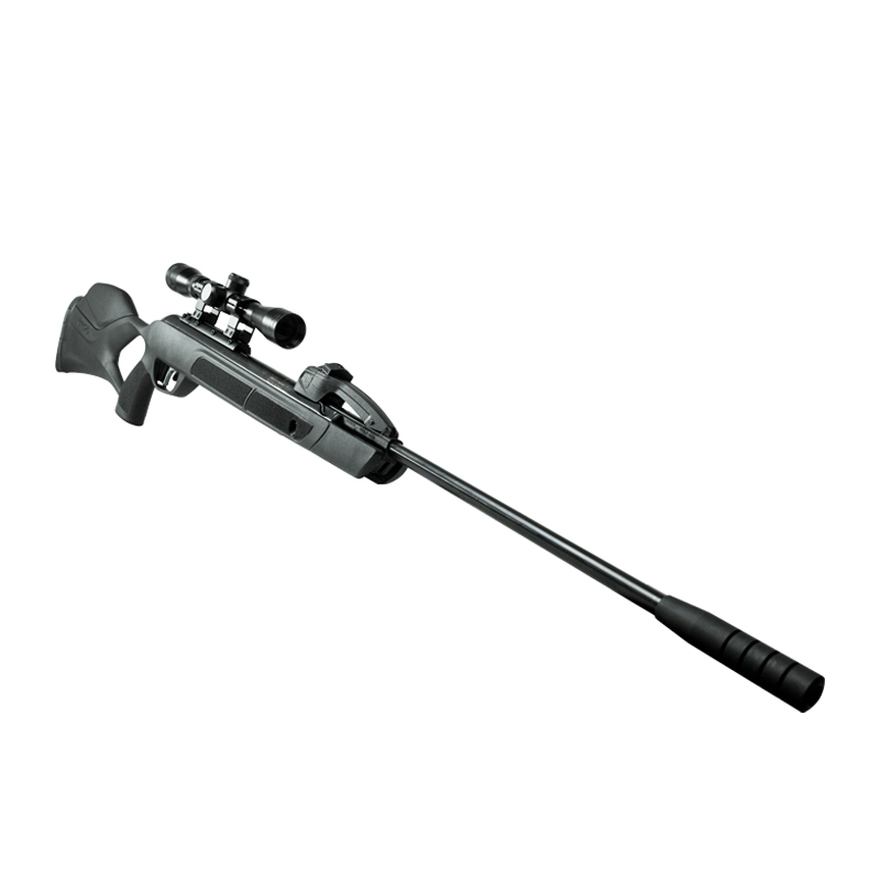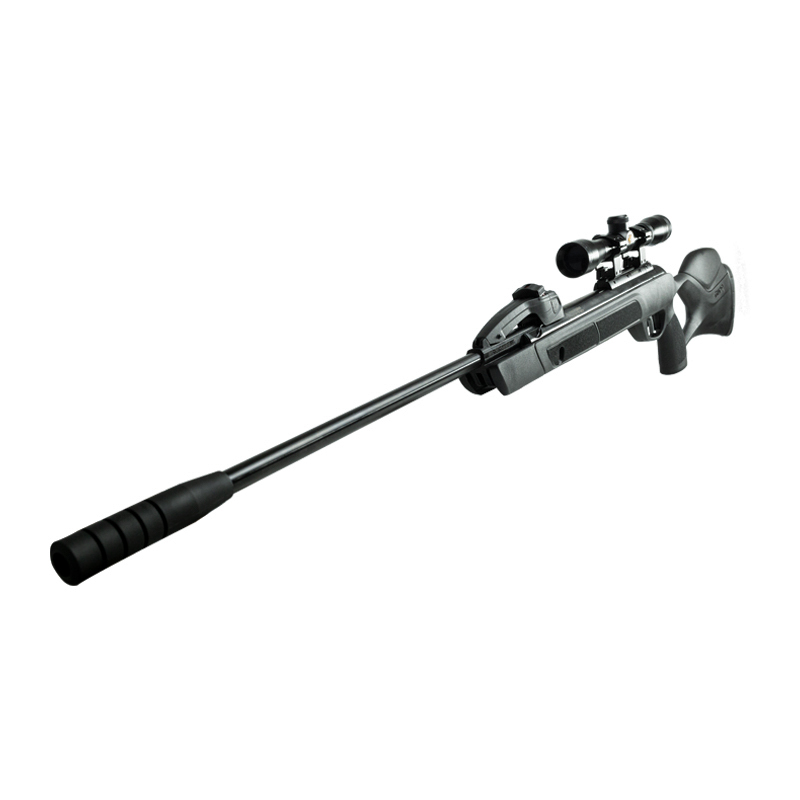 Carabina de longo alcance e com máxima precisão, conta com mola de aço de força dupla.