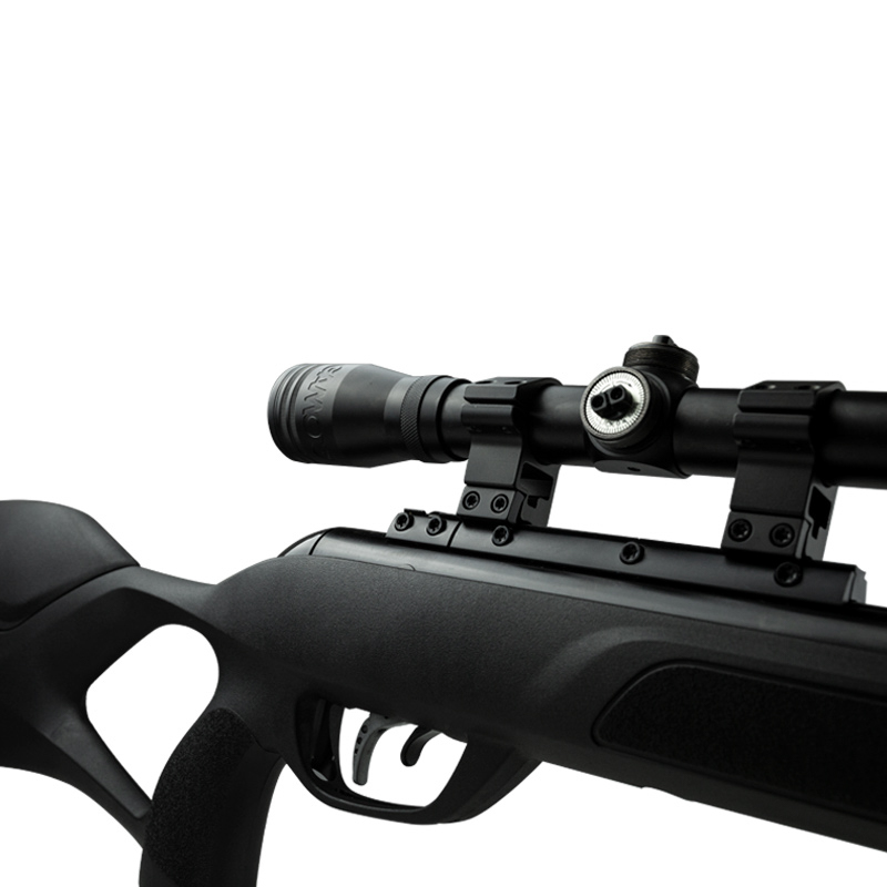 Conta com uma Luneta Gamo WRH que possui zoom fixo de 4x e uma objetiva de 32mm, as lentes são fabricadas em vidro ultra resistente e com bordas siliconadas, oferecendo segurança e alta resistência para impactos. Excelente campo de visão com um ângulo amplo.