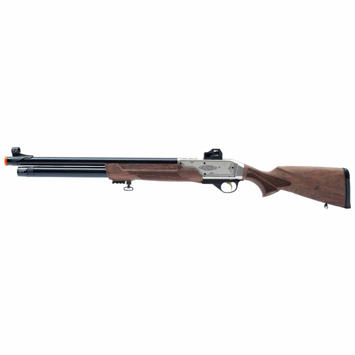 Tem um comprimento total de 106.8 cm e está equipada com um cano de 50 mm que entrega disparos com alta precisão utilizando chumbinhos 6.35 mm.