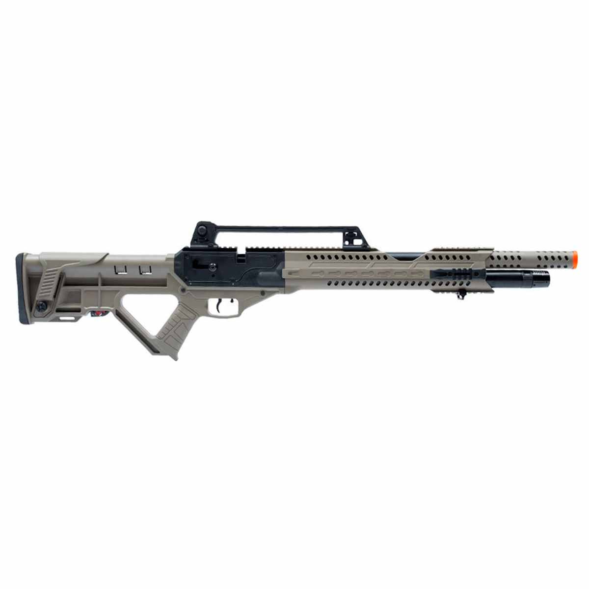 Seu funcionamento PCP (Pre Charged Pneumatic) garante uma pressão constante e um desempenho estável, enquanto o cilindro de ar removível em alumínio, com capacidade de 255 cc e pressão máxima de 200 BAR, oferece autonomia para aproximadamente 50 tiros por carga, facilitando o uso em sessões prolongadas de tiro.