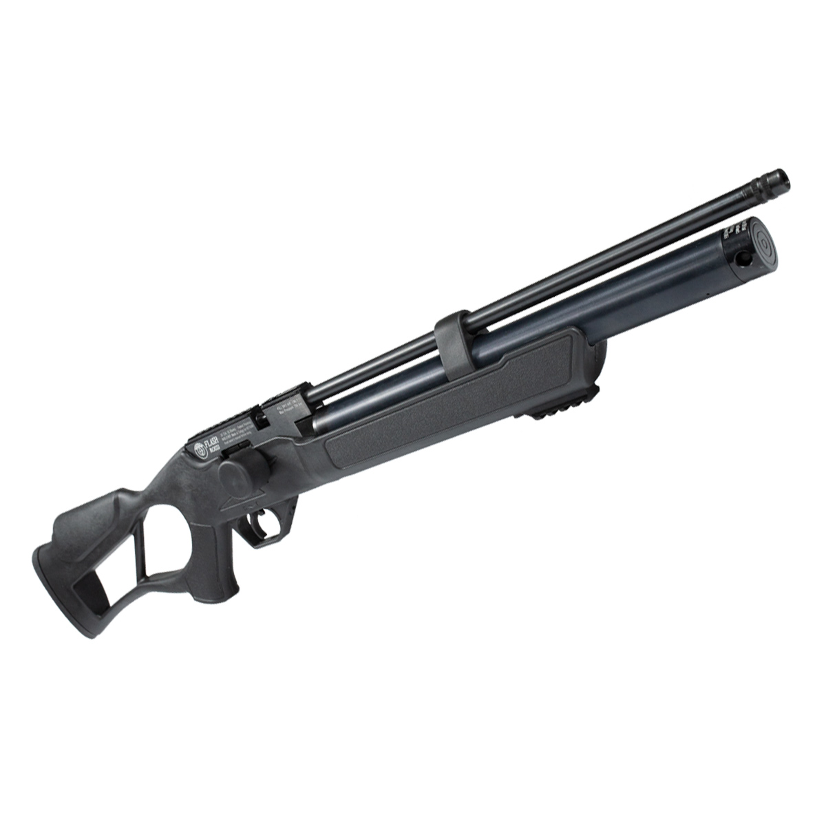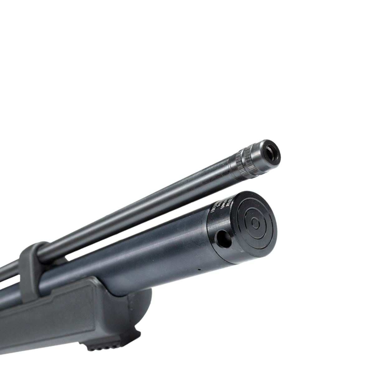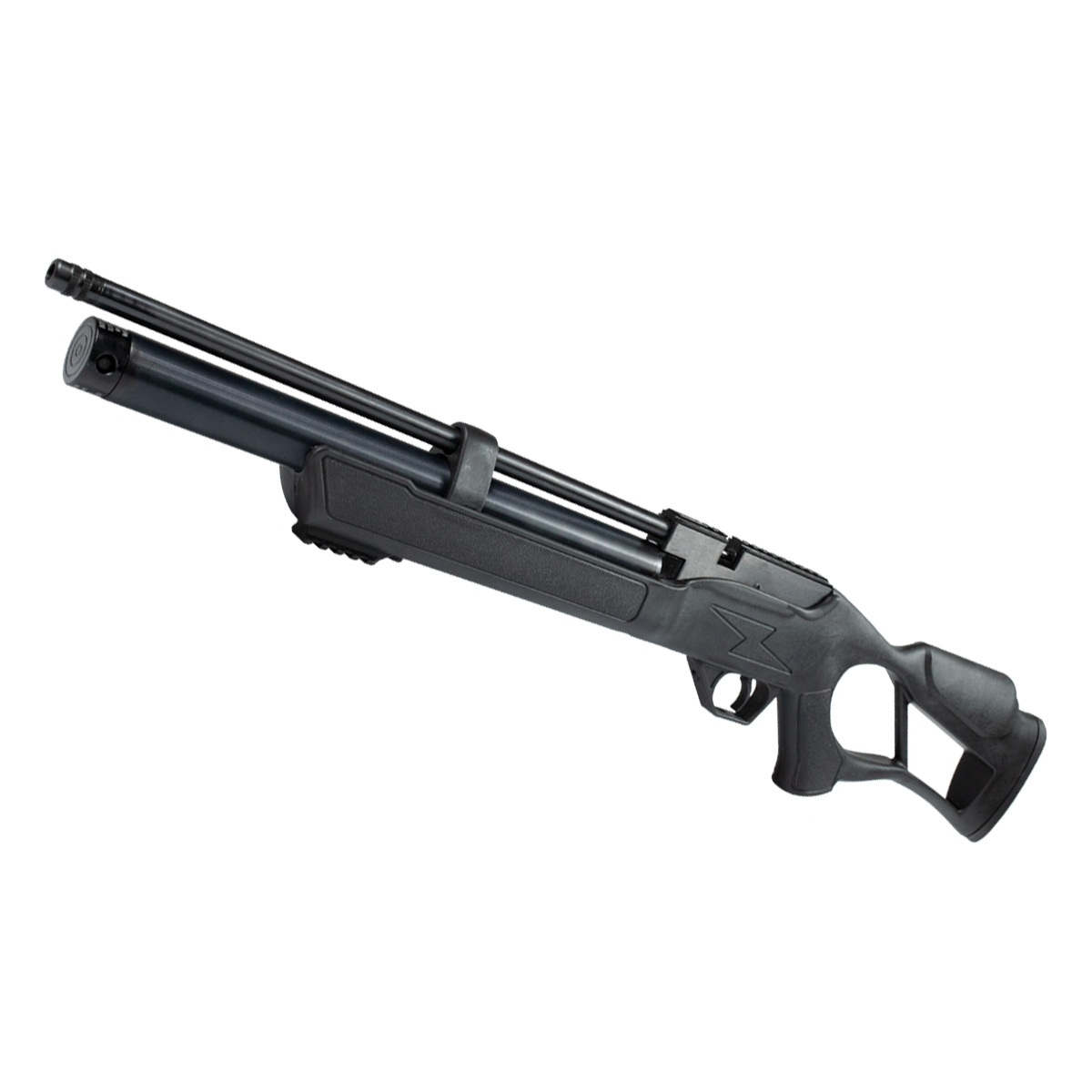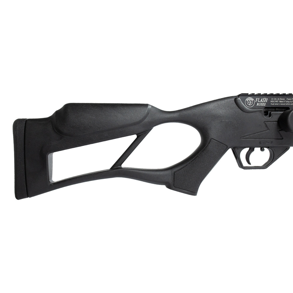 Esta Carabina 6.35mm possui soleira emborrachada e coronha tática ambidestra em polímero.