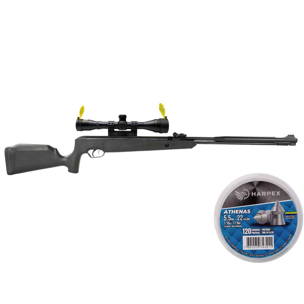 Carabina Naja 2.0 TAG Nitro 5.5mm Cano Fixo + Luneta Flash Premium 4x32 + Chumbinho Harpex 120 Un