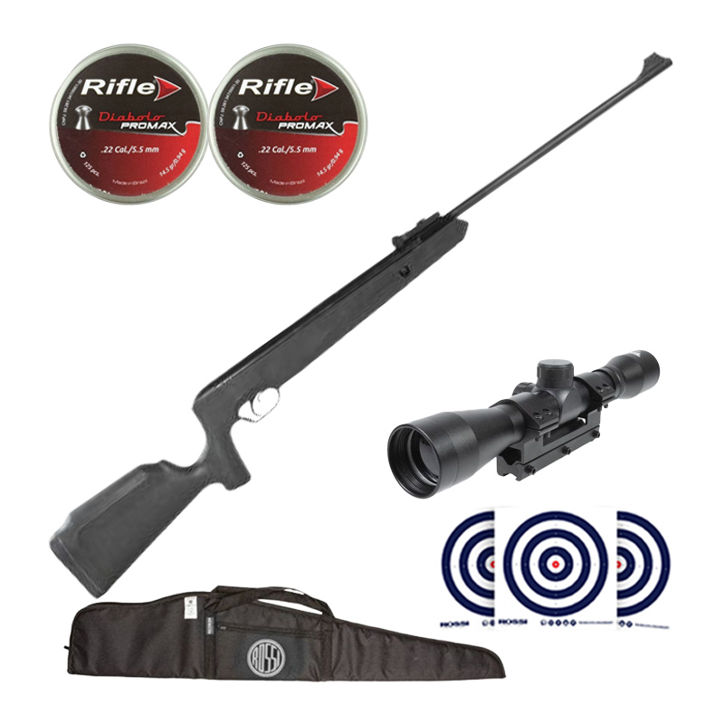 CARABINA GÁS RAM 60 KG - TAG NAJA 5.5MM + LUNETA 4X32 TAG + CAPA UNIVERSAL ROSSI + CHUMBINHOS RIFLE PROMAX 5.5MM + ALVOS