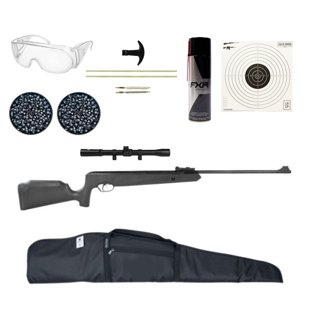Carabina Naja 5.5mm Nitro TAG + Luneta 4x20 + Capa para Carabina com Luneta + Óculos de tiro 200 Chumbos + Kit Limpeza 5.5mm + Desengripante Spray + Alvos de Treinamento