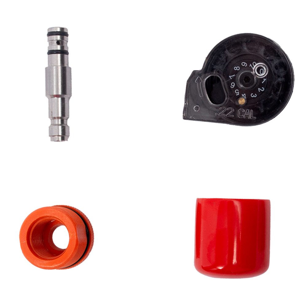 Acompanha dois magazines tipo tambor rotativo para 10 chumbinhos 5.5mm cada.