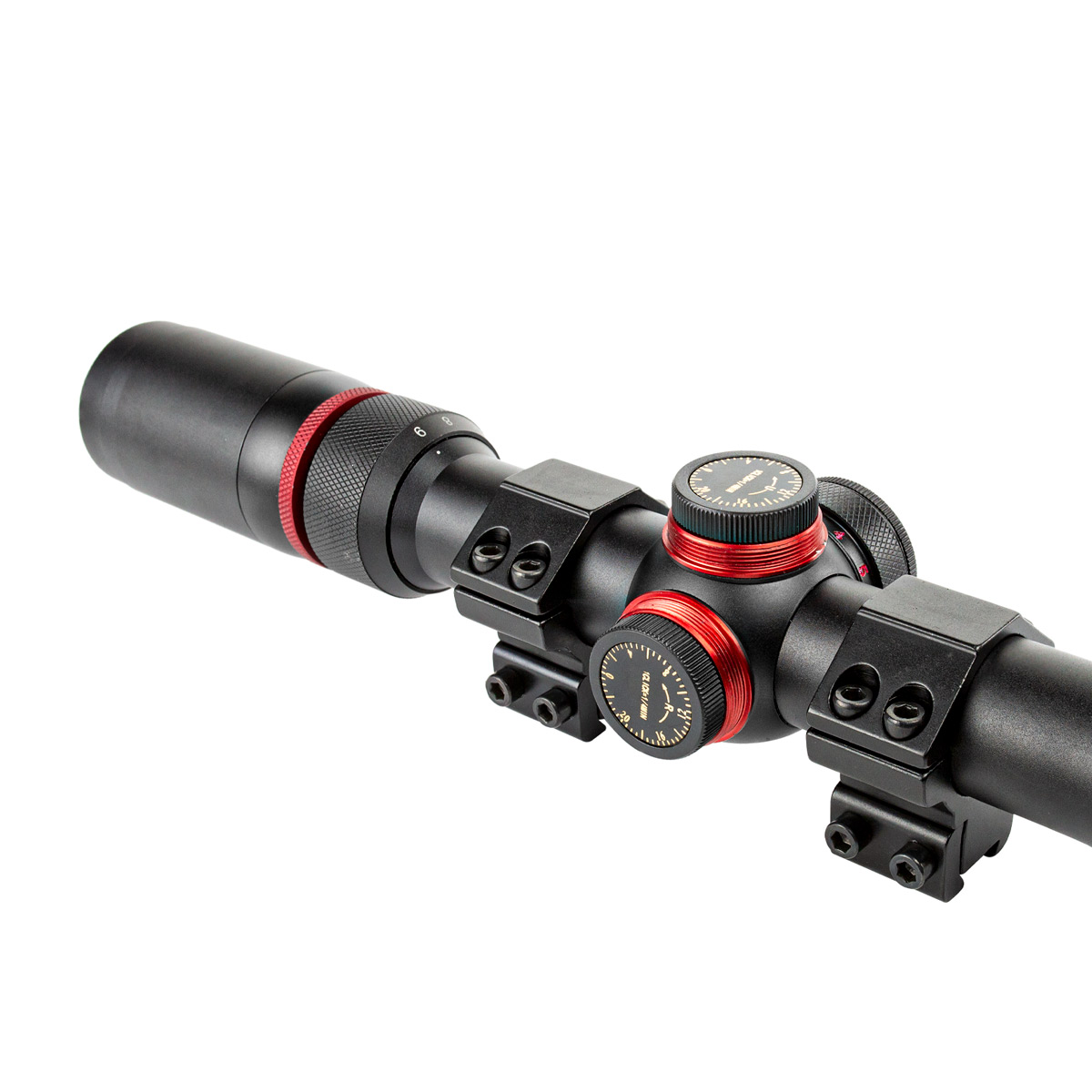 - Tipo de ajuste: Por click (1 click = 1/4" 100yds) *Não precisa de chave para o ajuste