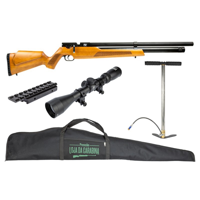CARABINA PCP 5.5MM ALPHA WOOD NOVA VISTA + LUNETA 3-9X40 + BOMBA MANUAL + ADAPTADOR + CAPA