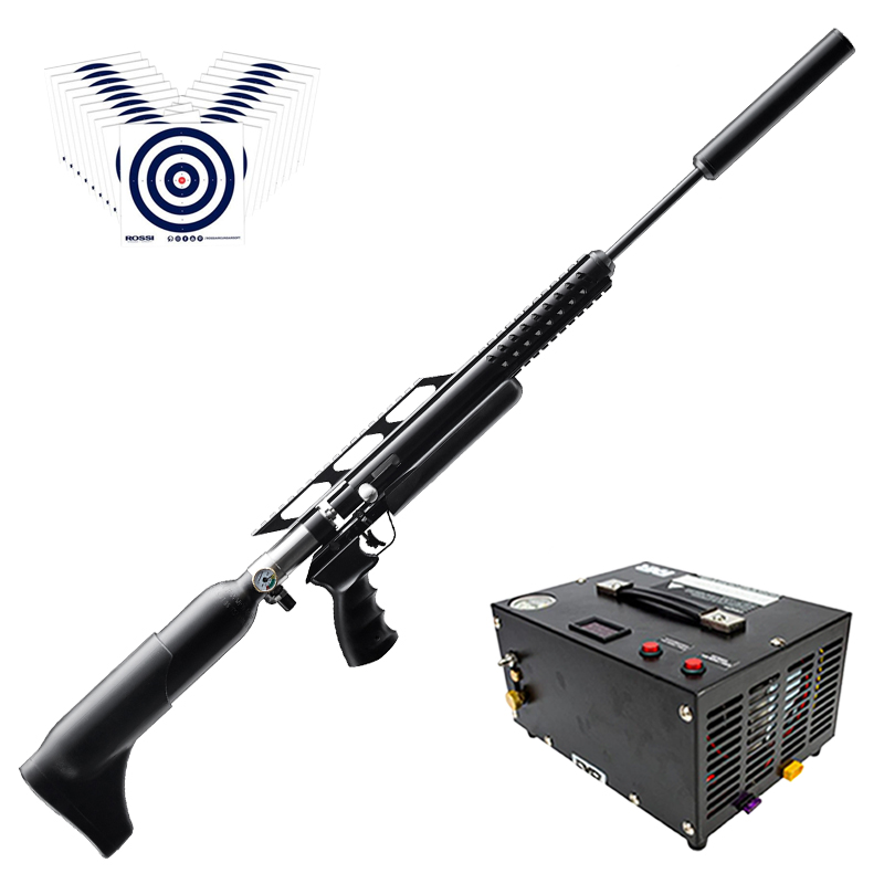 Mega KIT criado pela LojaDaCarabina! Contém Compressor de Ar KMD para facilitar seu trabalho ao preencher o cilindro da sua carabina e Alvos de Treino Rossi.