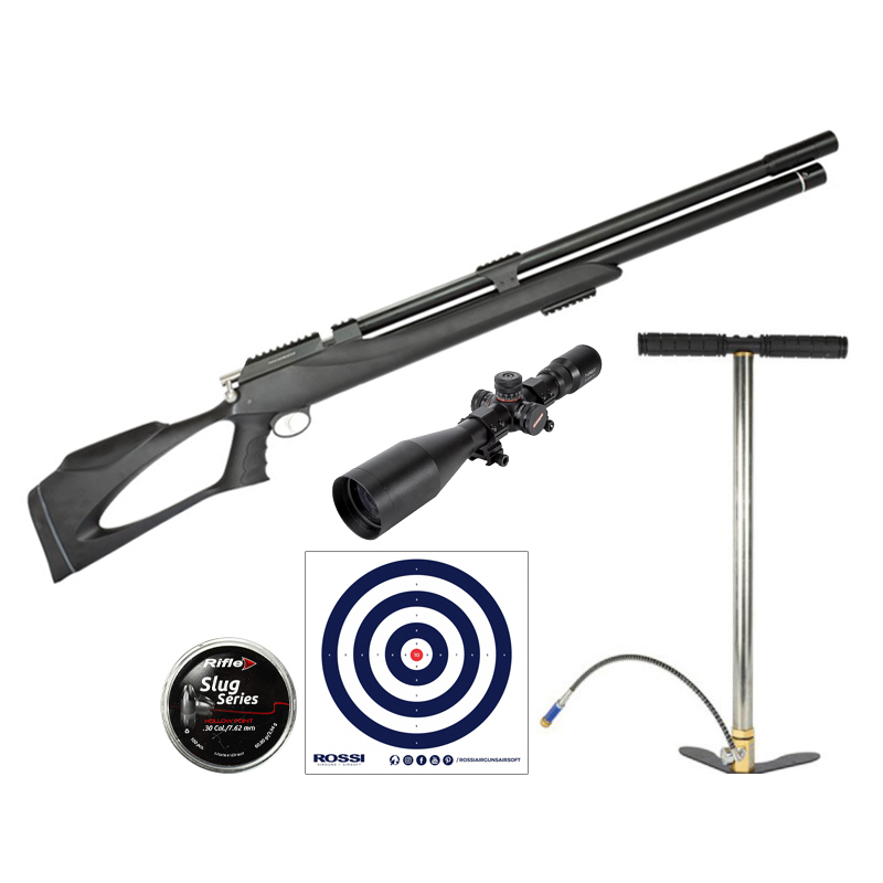 M25 THUNDER CARABINA PCP 7.62MM BLACK + LUNETA 6-24X50 T-EAGLE + CHUMBINHO + BOMBA MANUAL PCP FXR + ALVOS