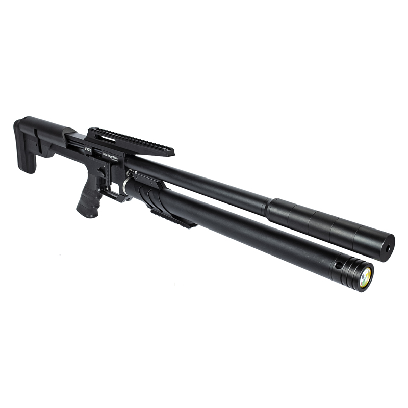 Pesa cerca de 3kg com construção em polímero e metal na cor preta e com detalhes na cor prata que deixam o design dessa Carabina PCP incrível.