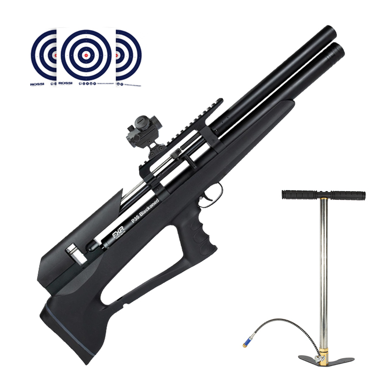 CARABINA TÁTICA PCP P35 BLACKENED BULLPUP 5.5 MM ARTEMIS + BOMBA MANUAL PCP 300 BAR FXR + ALVOS