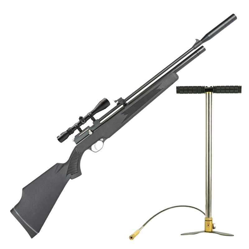 Combo contendo Bomba Manual PCP para recarga do cilindro da sua Carabina e Luneta Rossi 3-9x40 para melhor desempenho de precisão ao atirar.