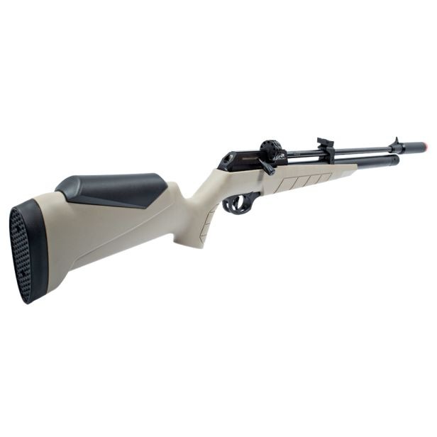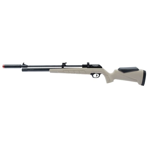 Seu sistema PCP (Pre Charged Pneumatic) trabalha com um cilindro de ar de 150 cc e pressão máxima de 250 bar, proporcionando uma autonomia média de até 60 disparos por carga. A carabina é equipada com válvula reguladora, garantindo maior constância de pressão e uniformidade entre os disparos. No calibre 5.5 mm (.22), atinge velocidades de até 260 m/s (850 fps), entregando excelente potência e precisão para tiro esportivo.