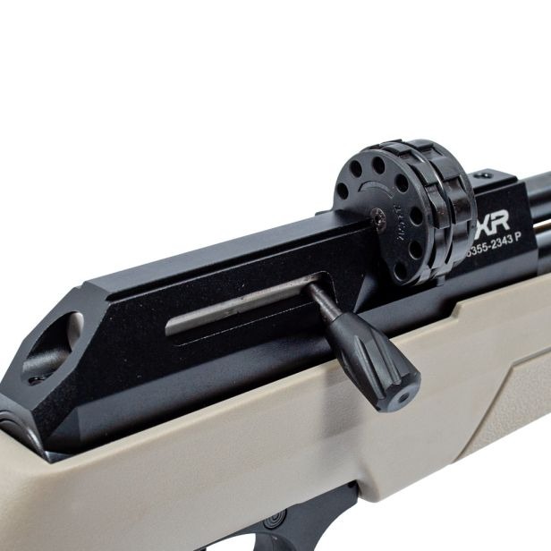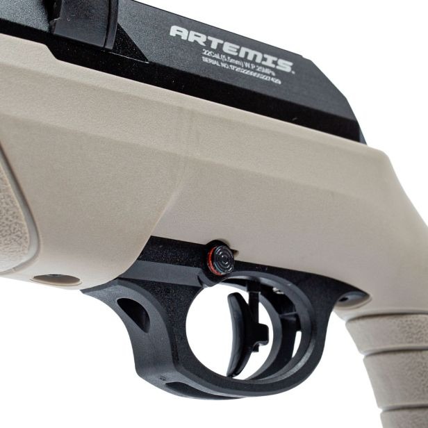 A PR900 G3 TAN opera tanto no modo multishot, utilizando magazine rotativo com capacidade para 10 chumbinhos, quanto no modo monotiro, por meio do adaptador incluso. O gatilho estilo match, ajustável e construído em metal, proporciona controle preciso do disparo, enquanto a trava de segurança manual, integrada ao guarda-mato, garante maior segurança durante o uso e transporte.