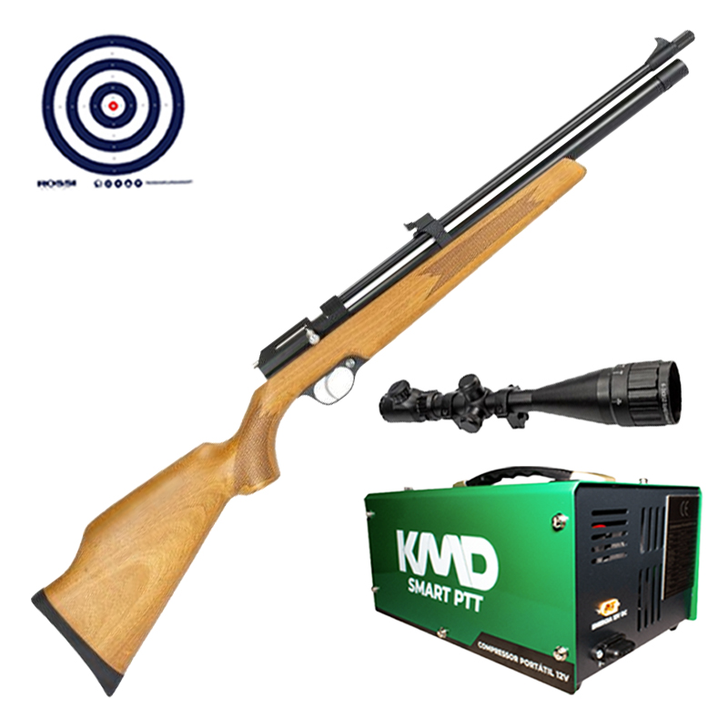 Carabina PCP Artemis PR900W G2 4.5mm com VR + Compressor de AR KMD + Luneta 6-24x50 11mm + Alvos