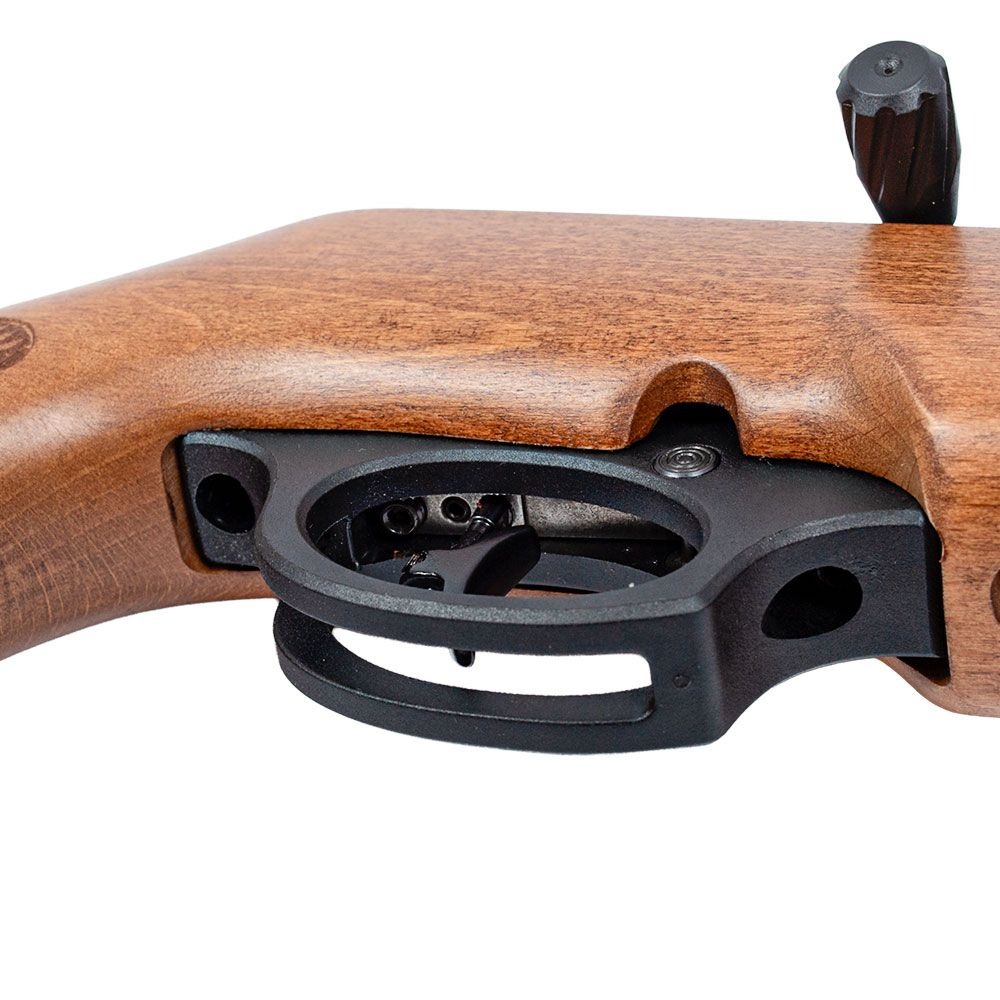 - Gatilho: Estilo Match, ajustável em metal
