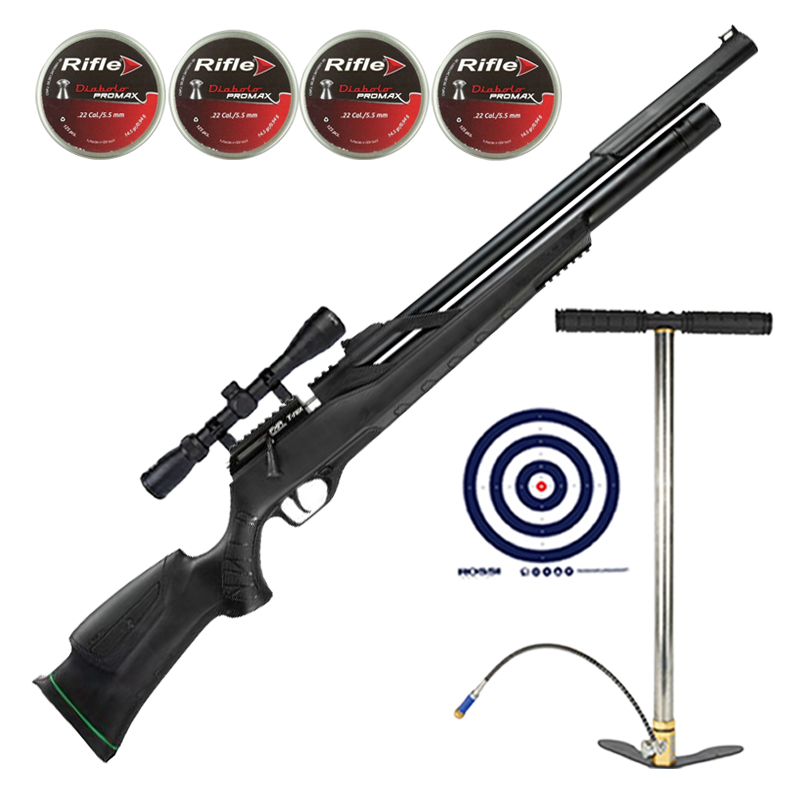 CARABINA PCP T-REX ARTEMIS PRETA 5.5MM + BOMBA MANUAL PCP + LUNETA 3-9X40 + CHUMBINHO + ALVOS