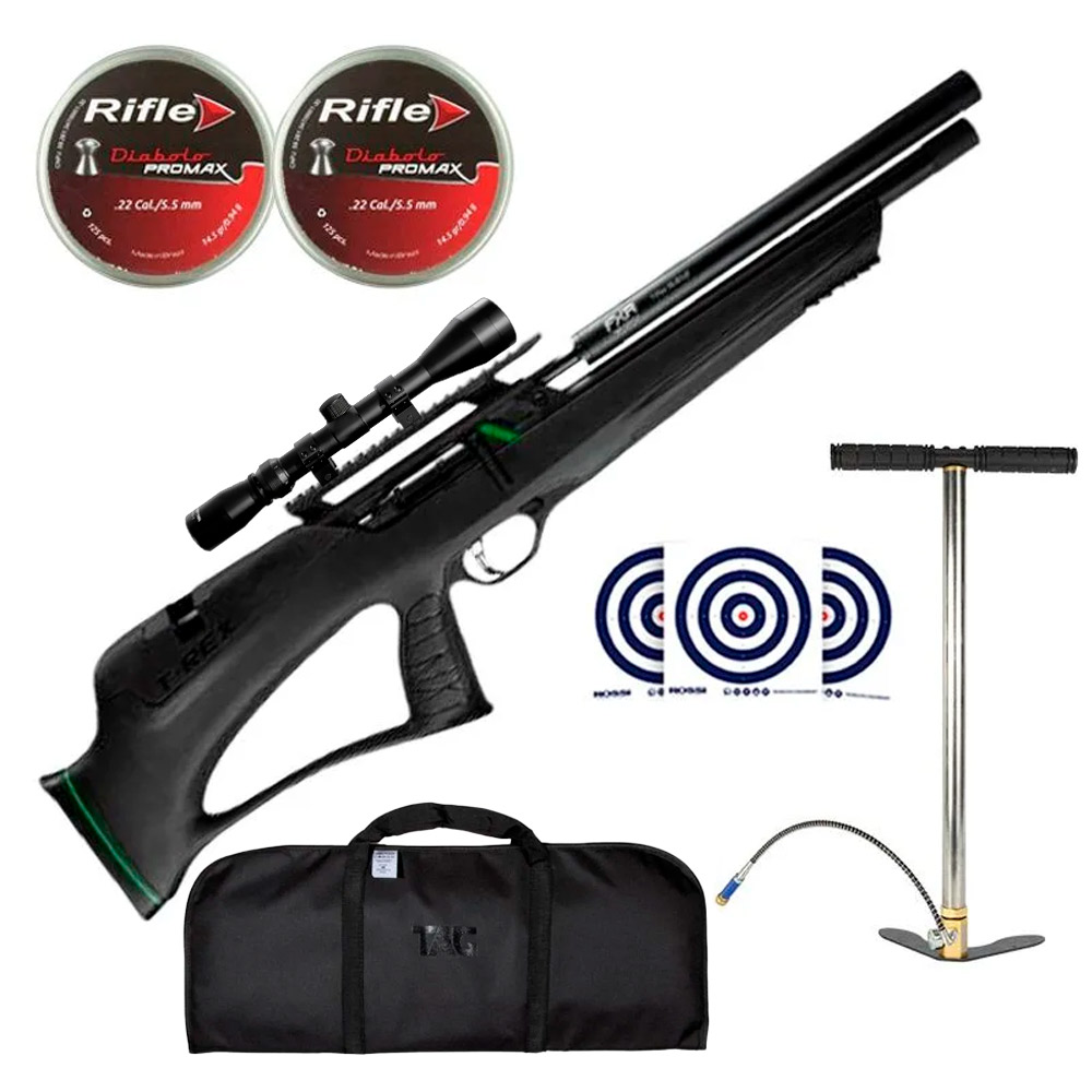 CARABINA PCP BULLPUP T-REX ARTEMIS 5.5 MM + BOMBA MANUAL + LUNETA 4X32 + CAPA + CHUMBINHOS + ALVOS