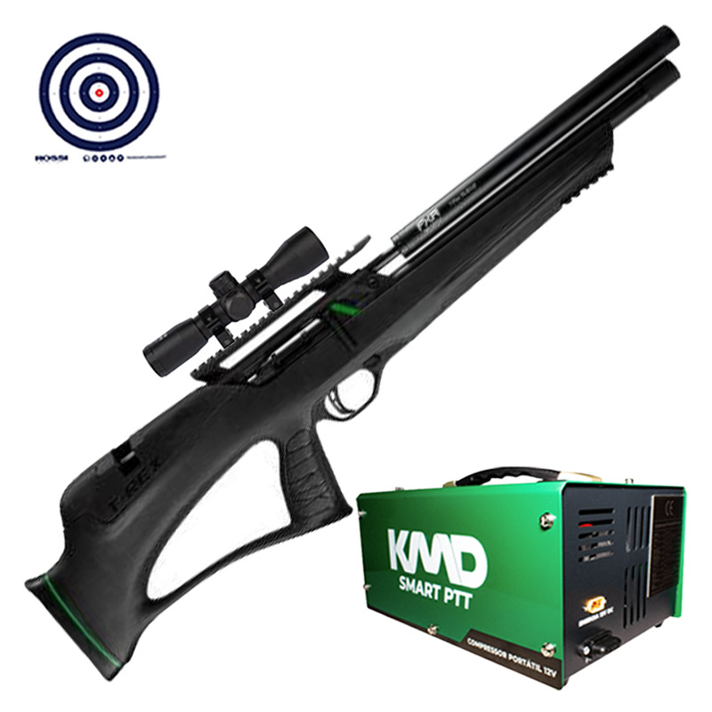 Carabina PCP Artemis T-Rex Bullpup 5.5mm + Luneta 4x32 + Compressor de AR KMD + Alvos